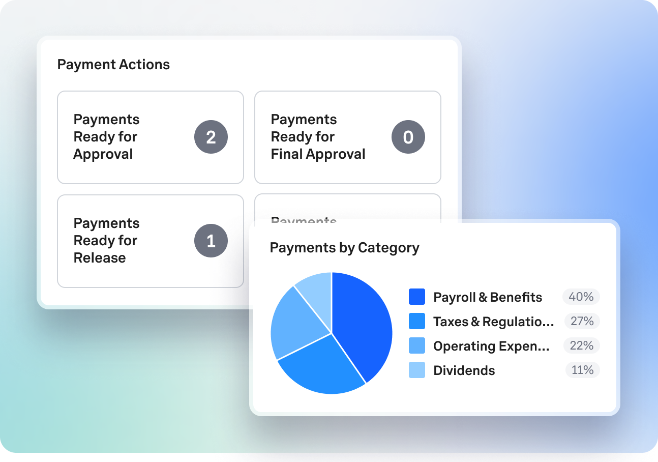 Initiate, approve, transmit, and reconcile payments across global banks with full policy controls and audit trails.