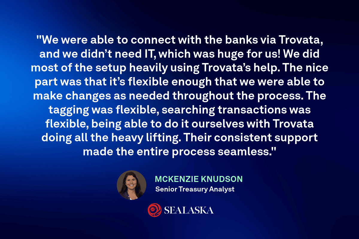 Recommended: Check out our recent episode of Fintech Corner featuring McKenzie Knudson, Senior Treasury Analyst at Sealaska. Learn about her team’s transition from spreadsheets to the almost magical experience of API-based treasury tech, and how it helped to centralize data, streamline reporting, and foster collaboration across 30+ subsidiaries.